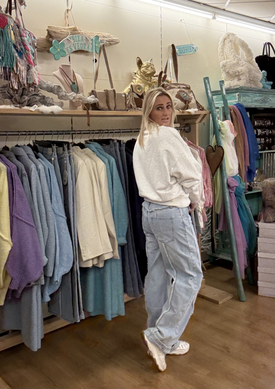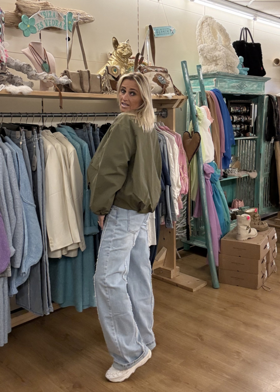 Jeans met ritssluiting, straight leg model, maakt de jeans apart door de naden die over de broek lopen ook aan de achterkant, je kan de broek een maat groter nemen, 69% cotton, 25% polyester, 7% lyocell, 1% elastaan.