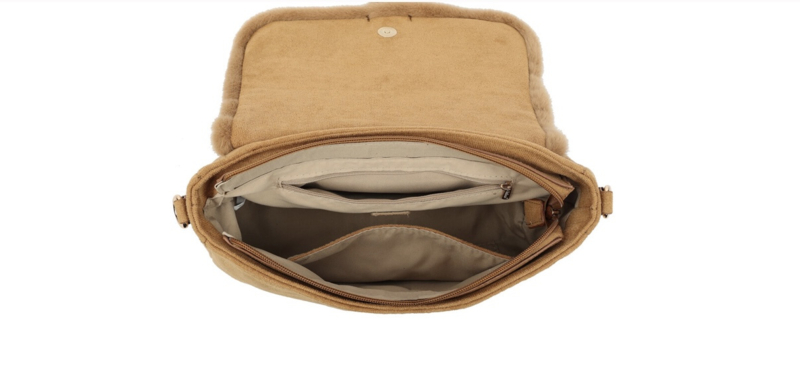 Zachte schoudertas met teddy afwerking, de tas heeft ook een teddy schouderband, ritssluiting, 1 vak en een vak met ritssluiting, kunst suéde, afneembaar en verstelbaar lang hengsel, afmeting: B34xH15xD15cm