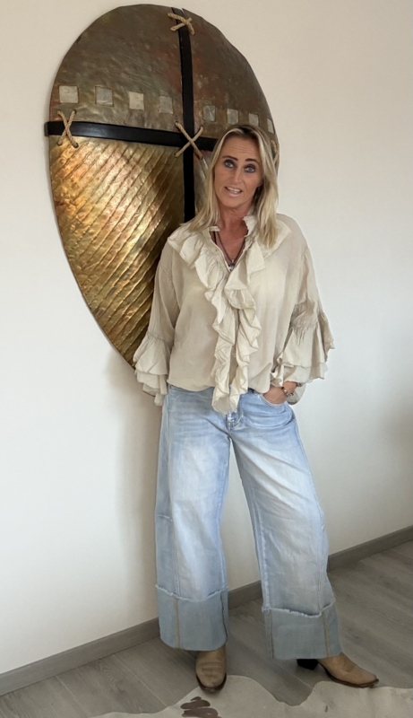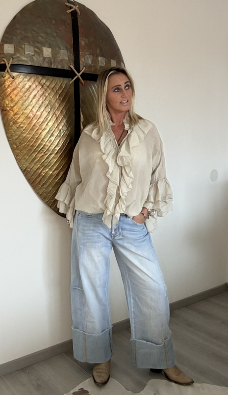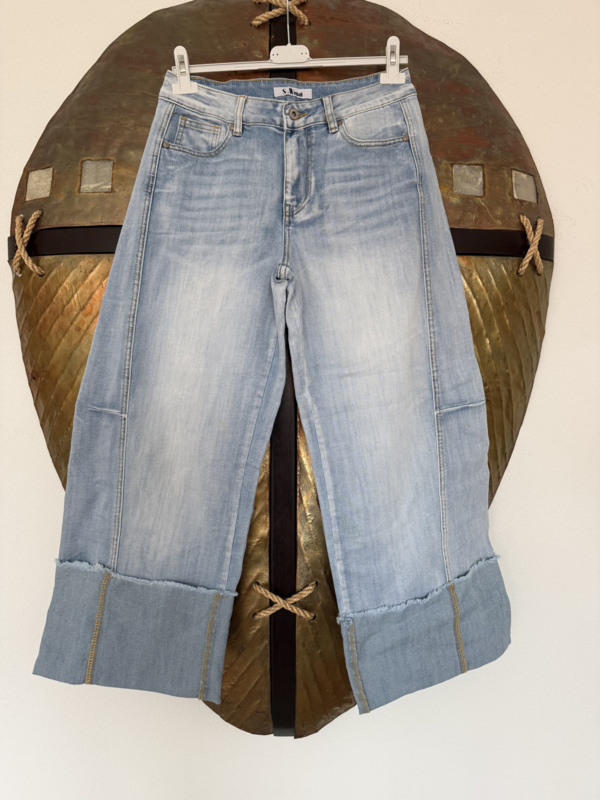Jeans van S.Women met stretch ook in de tailleband, ritssluiting met knoop, siernaden, onderaan de broek zit een grote omslag deze is gerafeld, pasvorm: valt op maat, 68,5% cotton, 29,5% polyester, 2% viscose, 2% elastaan.