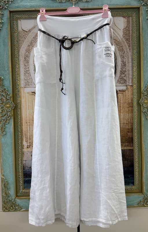 Linnen broek met rechte wijde broekspijpen, brede tailleband van joggingstof, sierriem, 2 zakken, one size ( S t/m XL)